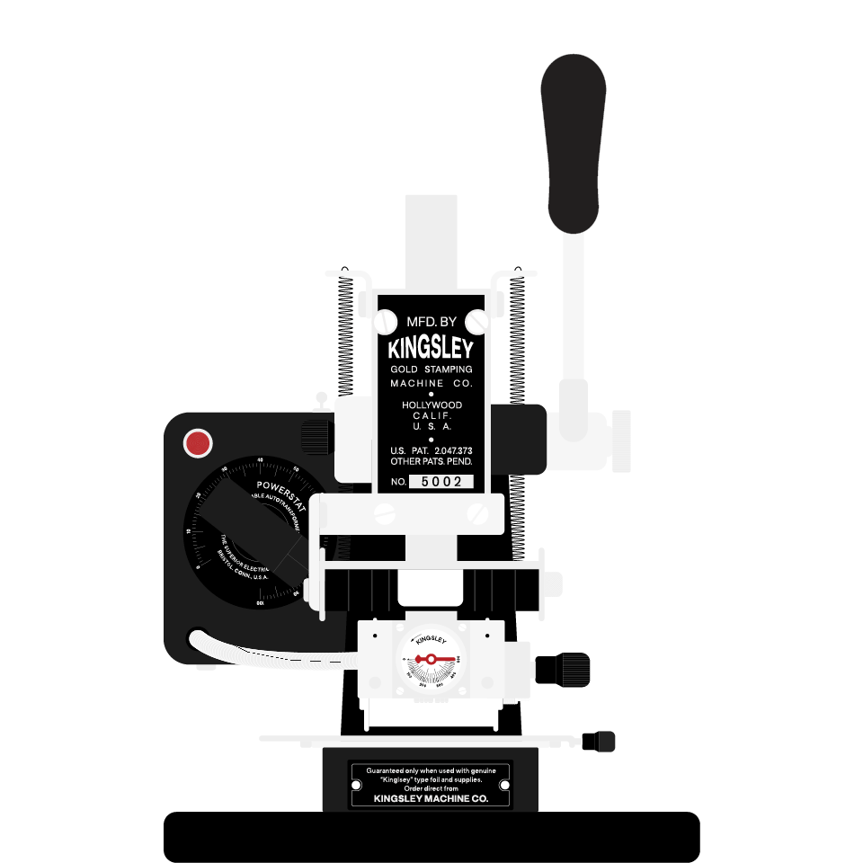 The Kingsley M50 Machine is a specific model of hot foil stamping machine produced by the Kingsley Machine company in 1950s